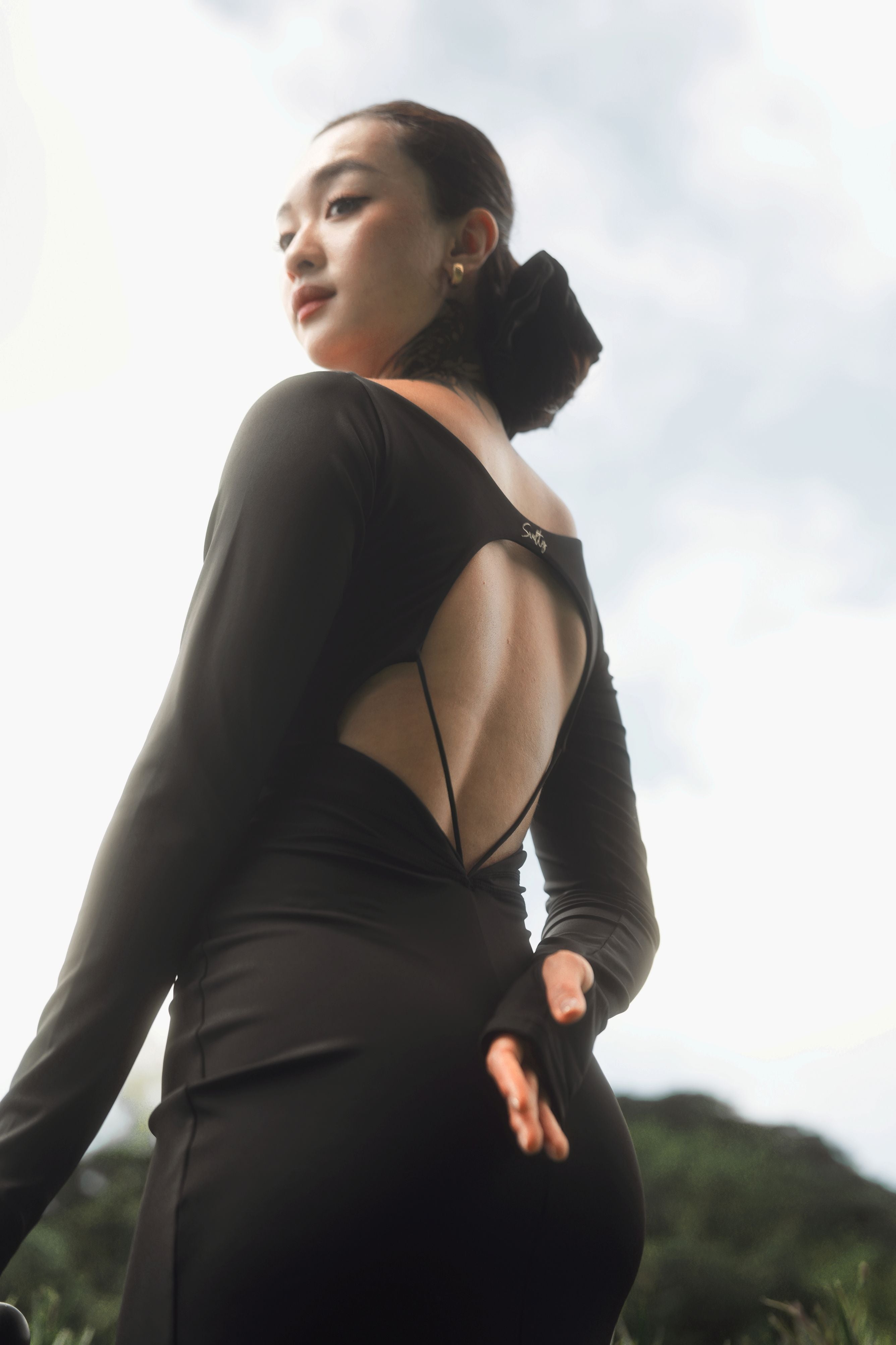 This is a magic show about "light and shadow" and "skin". The basalt black fabric is like a curtain at night, transforming your back lines into the focus of the stage. It is created for those souls who pursue ultimate understated (Sweetness) but exude a powerful aura (Salty) in the details.