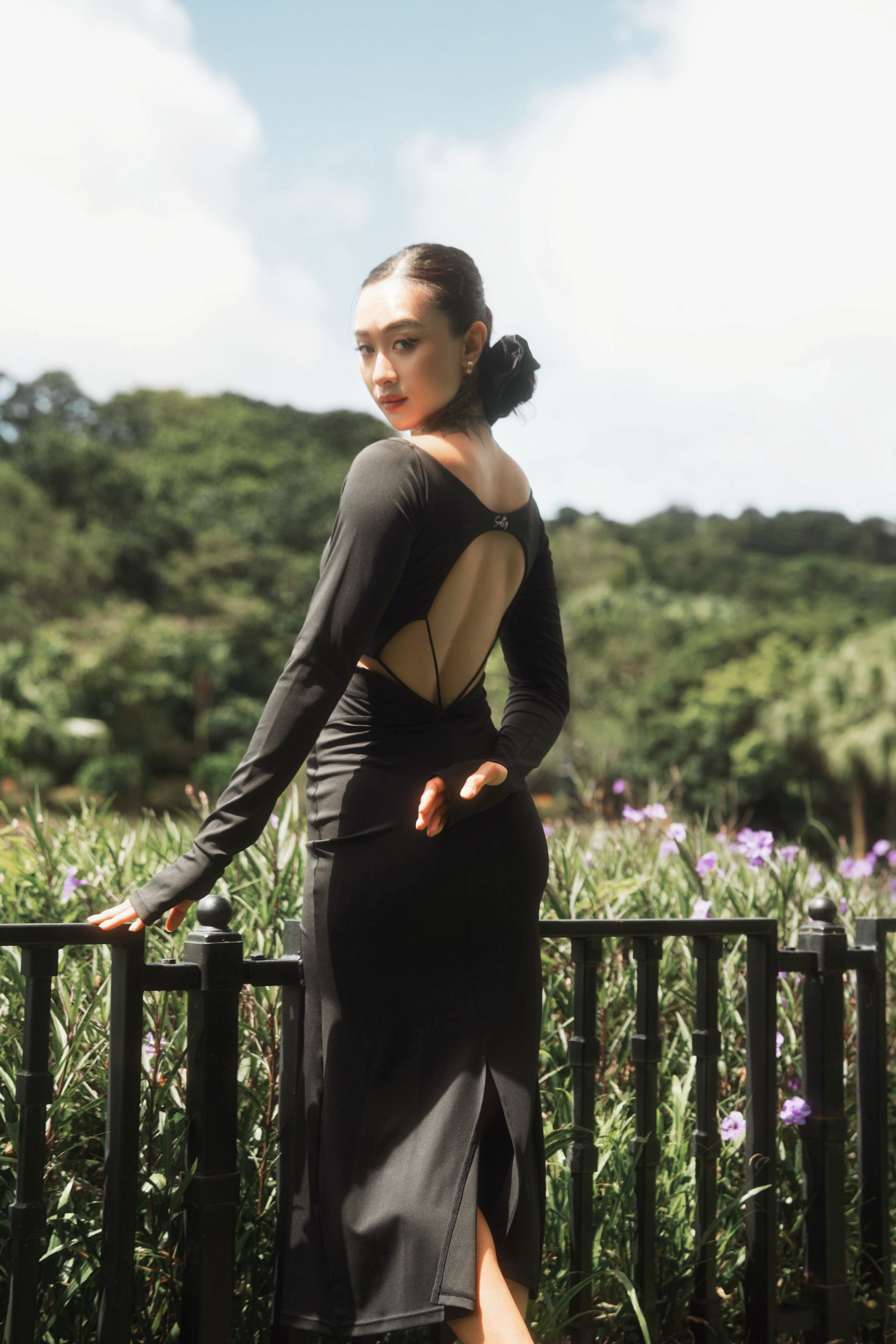 • A stunning visual transition with a plunging back: Breaking away from the dullness of traditional long-sleeved dresses, the back features a striking U-shaped open back design. This combination of "avant-garde and classic" not only showcases the alluring spine line but also visually elongates the overall proportions, making the back view the most profound narrative.