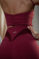 Burgundy Ruched Bra | Elegant pleats in a rich burgundy color: a 3D-cut sports bra with a beautiful back.