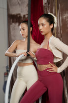 【Suitable for】 Hot Yoga, weight training, machine Pilates, or as an inner layer for off-the-shoulder tops, showcasing subtle pleated details.