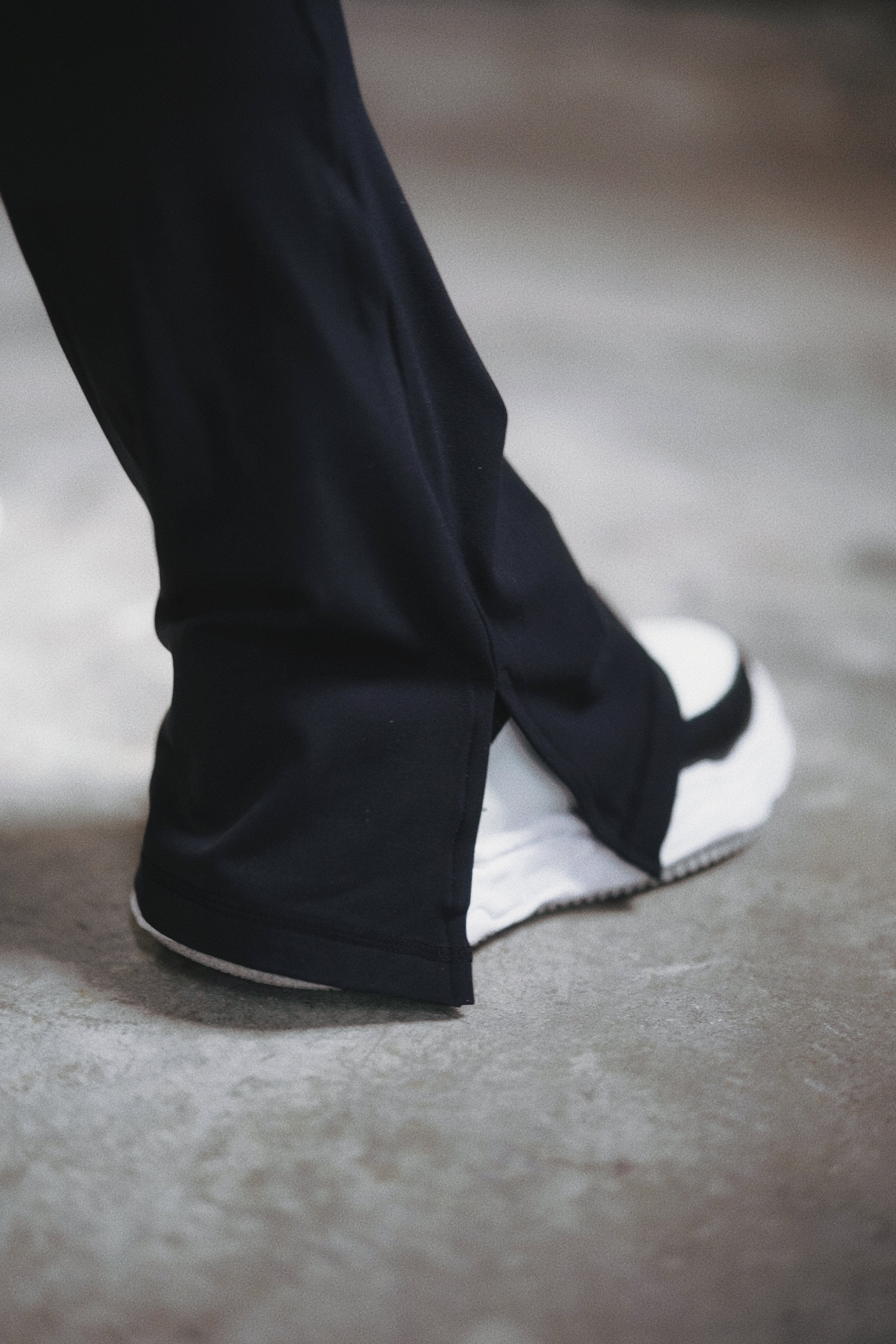 "The V-cut is a subtle yet powerful design element that gives the waistline more attitude. Paired with the flared hem with slits, you'll find that this is the 'perfect trousers' you've been looking for."